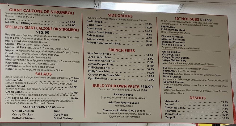 Introducing the menu at Manhattan Pizza, located in Las Vegas, offers a variety of appetizers, salads, and specialty pizzas. From Mozzarella Sticks to White Pizza, there is something for everyone. Customers rave about the delicious wings, Hawaiian pizza, and Caesar salad. The owner, Ben, takes pride in using homemade dough and family recipe sauce, creating mouthwatering pies. With options for delivery, takeout, and catering, Manhattan Pizza is a go-to spot for groups, families, and anyone craving quality Italian fare. The relaxed atmosphere, attentive service, and flavorful dishes make this restaurant a must-visit. Whether you're in the mood for a quick lunch bite or a satisfying dinner, Manhattan Pizza has you covered. Don't miss out on experiencing the flavors and hospitality that keep customers coming back for more.
